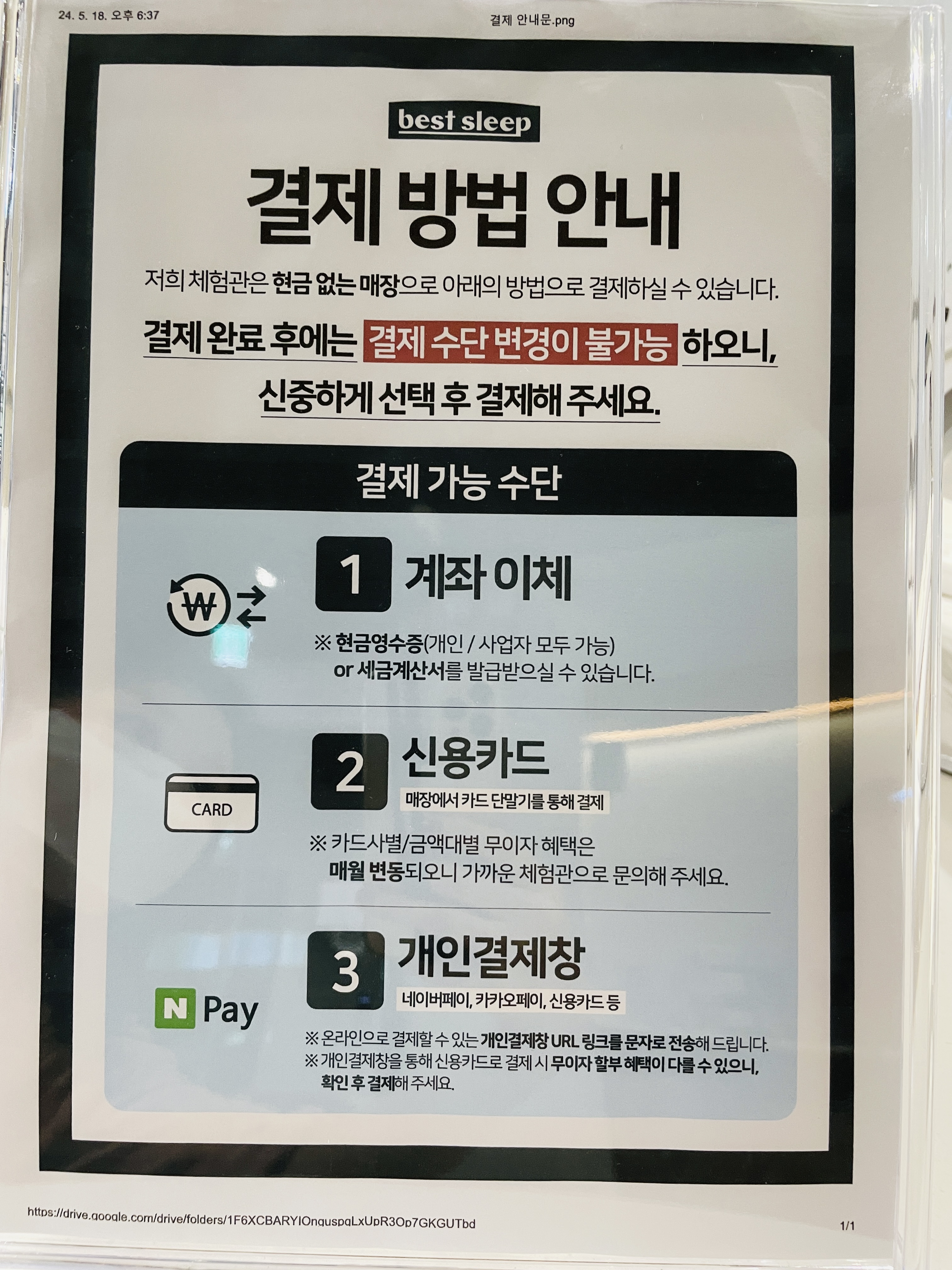 현금 없는 매장이라 결제는 계좌이체, 신용카드,